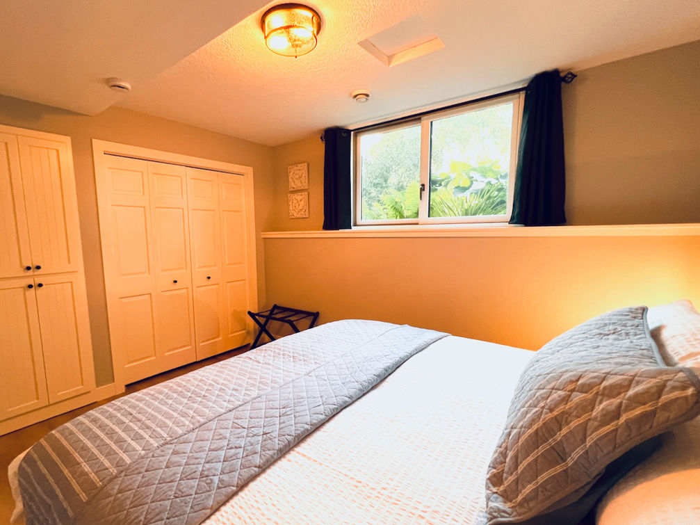 The brand new main floor bathroom is fitted with a dual-vanity, plenty of storage and large soaking tub with shower over. In the lower level the bathroom features a large glass shower enclosure and underfloor heat. Fresh plush white towels and luxury soaps and toiletries are provided for your stay.